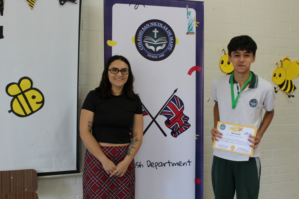 Este viernes 5 de diciembre se llevó a cabo una nueva versión de esta instancia formativa, organizada por el Departamento de Inglés, compuesto por la profesora Francisca Mandujano —jefa del departamento— junto a Miss Jennifer y Teacher Guillermo. En esta edición también colaboró María Eugenia, parte del equipo de Convivencia Escolar y exdocente de inglés, quien aportó desde su experiencia y cariño por esta asignatura. Como cada año, contamos además con el apoyo de Oxford, quienes participaron como parte del jurado y entregaron obsequios a las y los finalistas, reforzando el trabajo conjunto entre nuestra comunidad y aliados educativos.